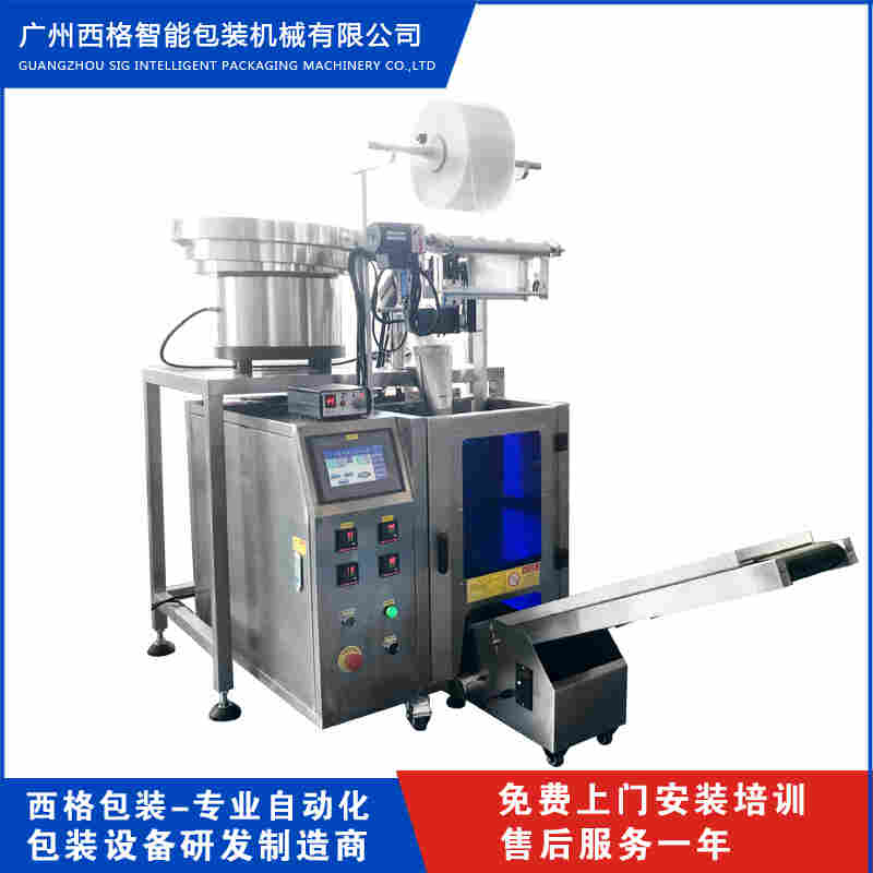 全自动单盘计数包装机 PE膜打码包装设备厂家成品输送机广州西格一、技术参数: 功能:制袋、打码(选)、计数、填充、封口、包装等 包装速度:1-120包/分钟(视包装要求) 制袋尺寸:长:40-200mm 宽:20-150mm 功率:1.5KW/220V 薄膜厚度:0.02-0.08mm 计量范围:单种规格螺丝的1-50枚计数包装 耗气量:20L/min 0.75Ma 包装袋封口形式:三边封或背封 包装材料:薄膜、复合膜 包装类型:袋装 自动化程度:全自动 加工定制:是 经营模式:生产厂家 重量/外形尺寸:视工程量而定 全自动单盘计数包装机 PE膜打码包装设备厂家成品输送机广州西格二、售后服务 机器安装时,我们派出技术人员到用户现场进行安装指导,负责对包装机组进行调试,确保用户在短的时间内掌握设备的操作、维护及保养技术。免费为客户的操作人员进行培训,确保客户的操作人员能熟练操作设备后方离厂。 产品实行一年保修、终身维修服务;保修期内免费更换零配件,保修期后按成本价供应各种零配件;当用户的设备有升级技术时,我们将及时通知用户,保证用户使用的设备能始终保持技术的性,发挥大强的包装效率。