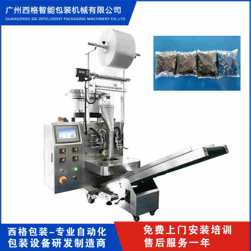 挂胶磁环包装机 全自动单盘塑胶计数点数包装设备厂家一、技术参数: 功能:制袋、打码(选)、计数、填充、封口、包装等 包装速度:1-120包/分钟(视包装要求) 制袋尺寸:长:40-200mm 宽:20-150mm 功率:1.5KW/220V 薄膜厚度:0.02-0.08mm 计量范围:单种规格螺丝的1-50枚计数包装 耗气量:20L/min 0.75Ma 包装袋封口形式:三边封或背封 包装材料:薄膜、复合膜 包装类型:袋装 自动化程度:全自动 加工定制:是 经营模式:生产厂家 重量/外形尺寸:视工程量而定 挂胶磁环包装机 全自动单盘塑胶计数点数包装设备厂家二、售后服务 机器安装时,我们派出技术人员到用户现场进行安装指导,负责对包装机组进行调试,确保用户在短的时间内掌握设备的操作、维护及保养技术。免费为客户的操作人员进行培训,确保客户的操作人员能熟练操作设备后方离厂。 产品实行一年保修、终身维修服务;保修期内免费更换零配件,保修期后按成本价供应各种零配件;当用户的设备有升级技术时,我们将及时通知用户,保证用户使用的设备能始终保持技术的性,发挥大强的包装效率。